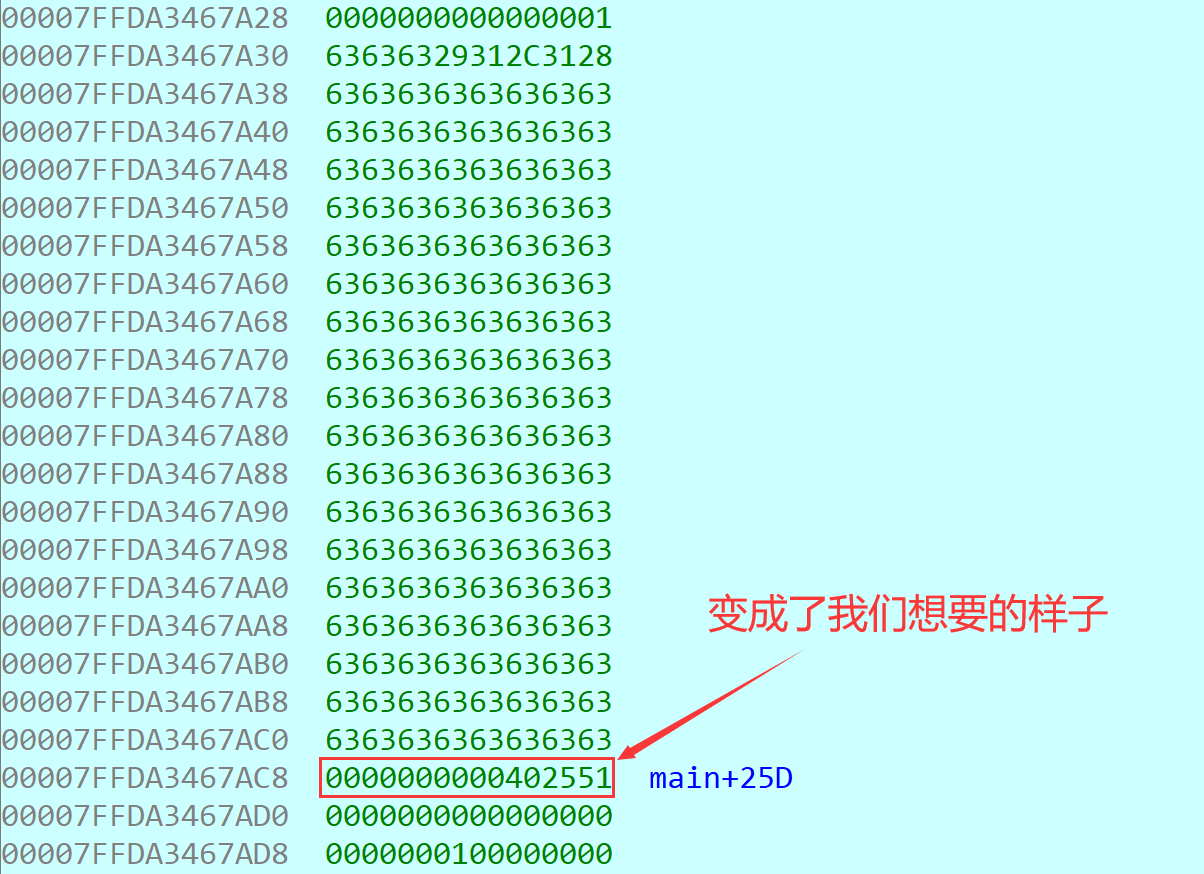 pos = 0x401405再次检查,成功写入。