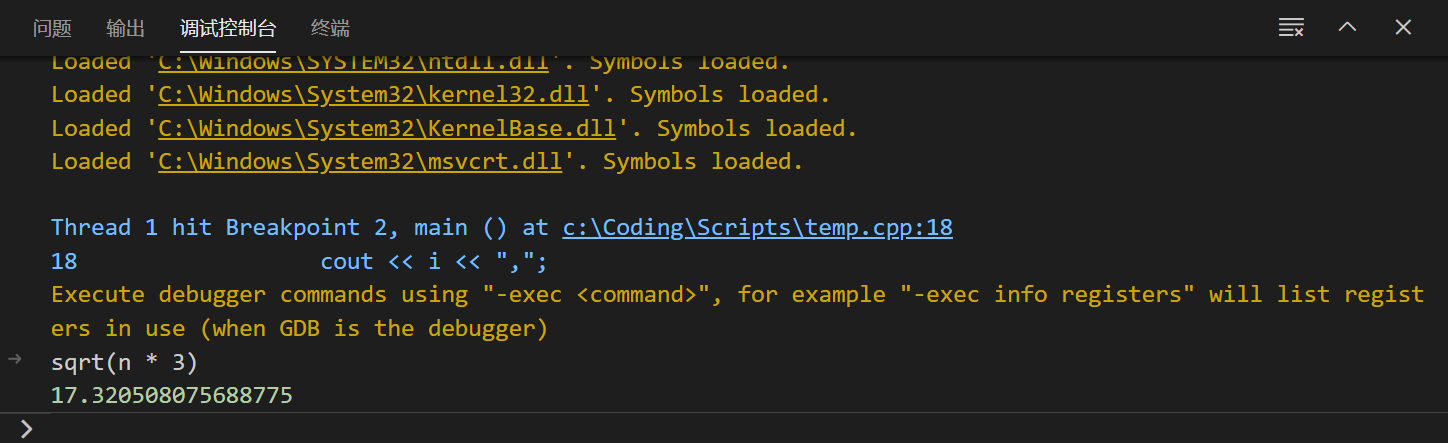 VSCode 中的调试体验是远超 dev c++ 的,而断点调试是程序 debug 过程中十分好用的手段 (别再运行中输出信息了啊喂),下面我将教你进行简单的调试工作。