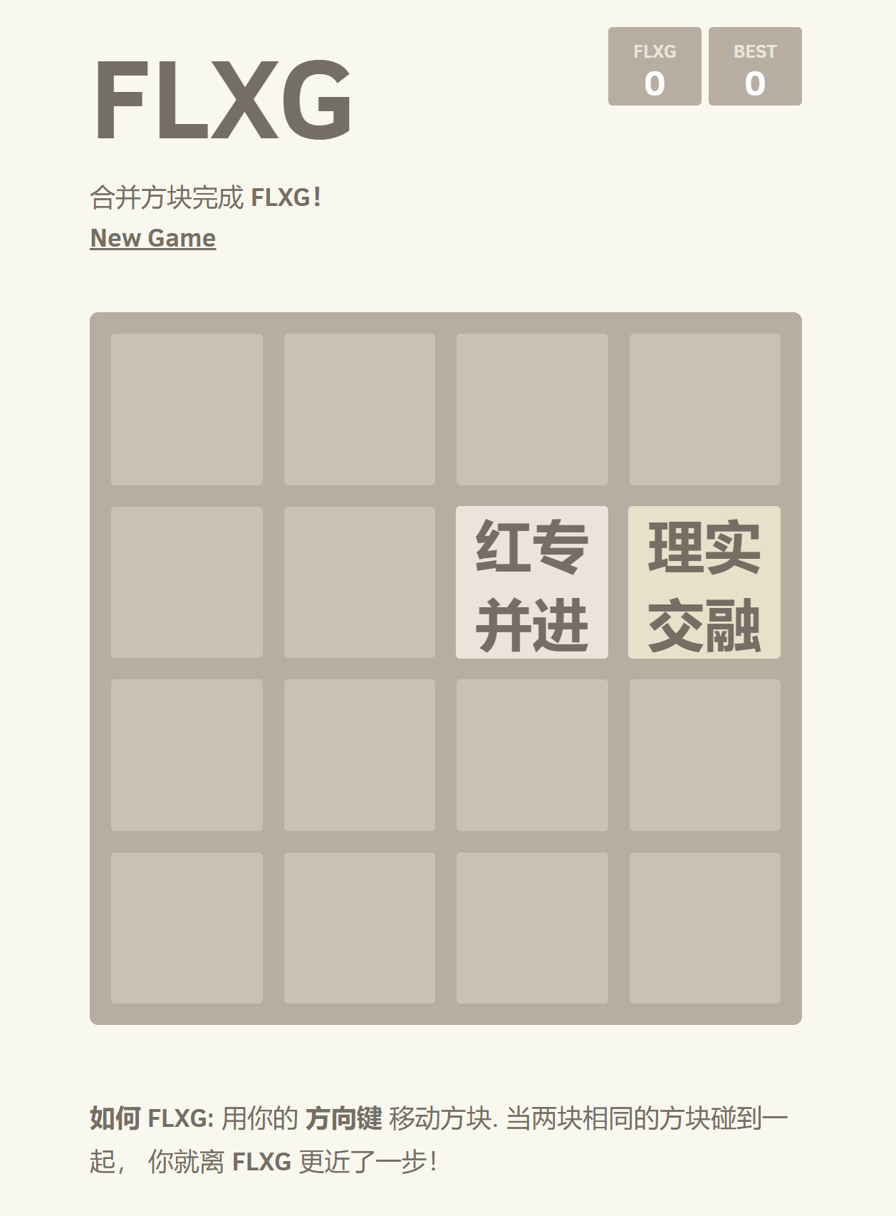 要实现 FLXG,你需要过人的智慧,顽强的意志,和命运的眷属。只有在 2048 的世界里证明自己拥有这些宝贵的品质,实现「大成功」,你才有资格扛起 FLXG 的大旗。